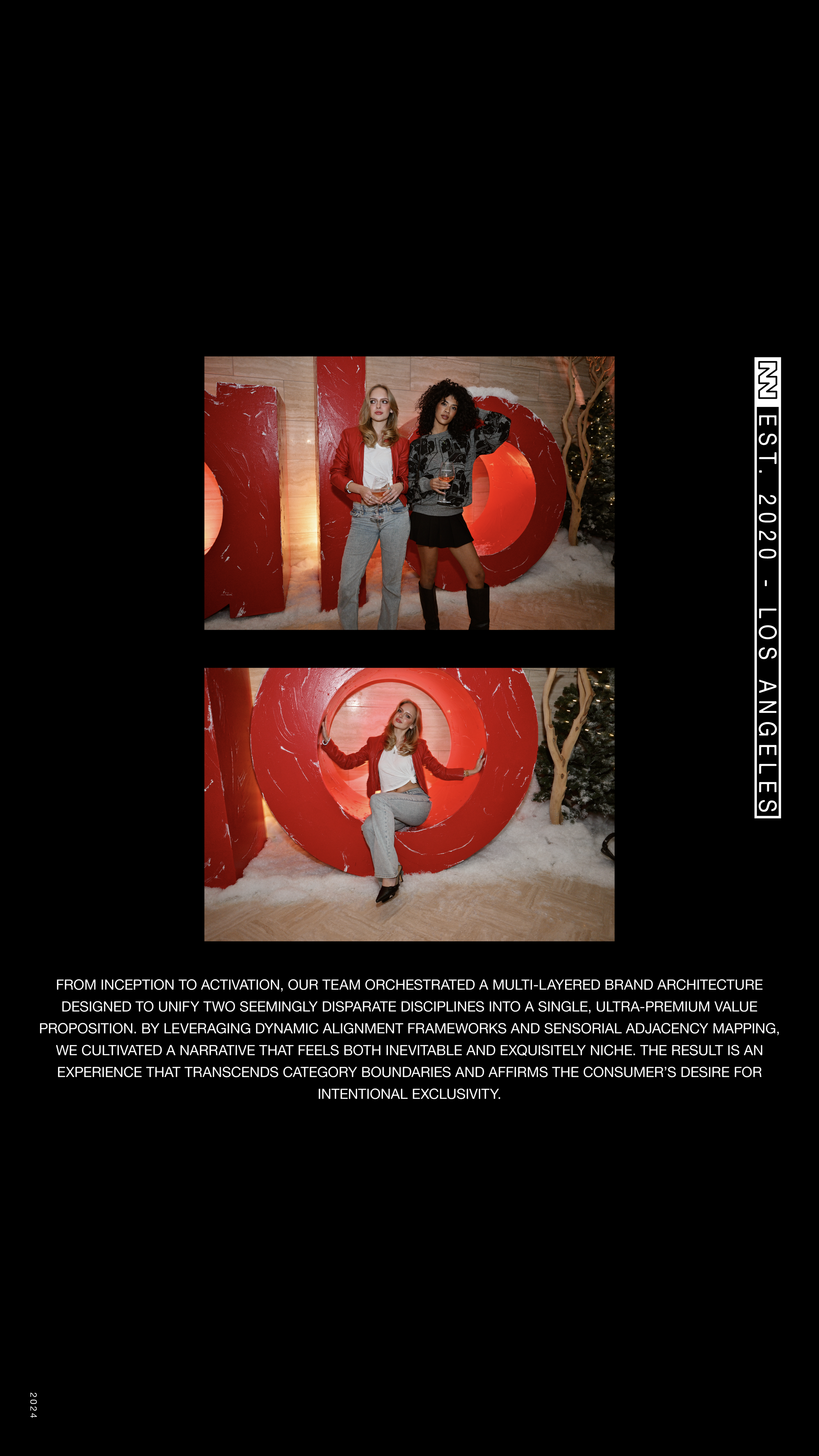 The environment rejected overt festivity in favor of cultivated nuance. The holiday theme was distilled to its most elegant codes—warm metallics, restrained florals, and a palette drawn from cellar and studio alike. Attendance was intentionally selective: collectors, founders, and cultural patrons whose presence signaled not volume, but value. The result was an atmosphere that felt less like a party and more like a private viewing—an experiential salon where conversation carried as much weight as the wine.